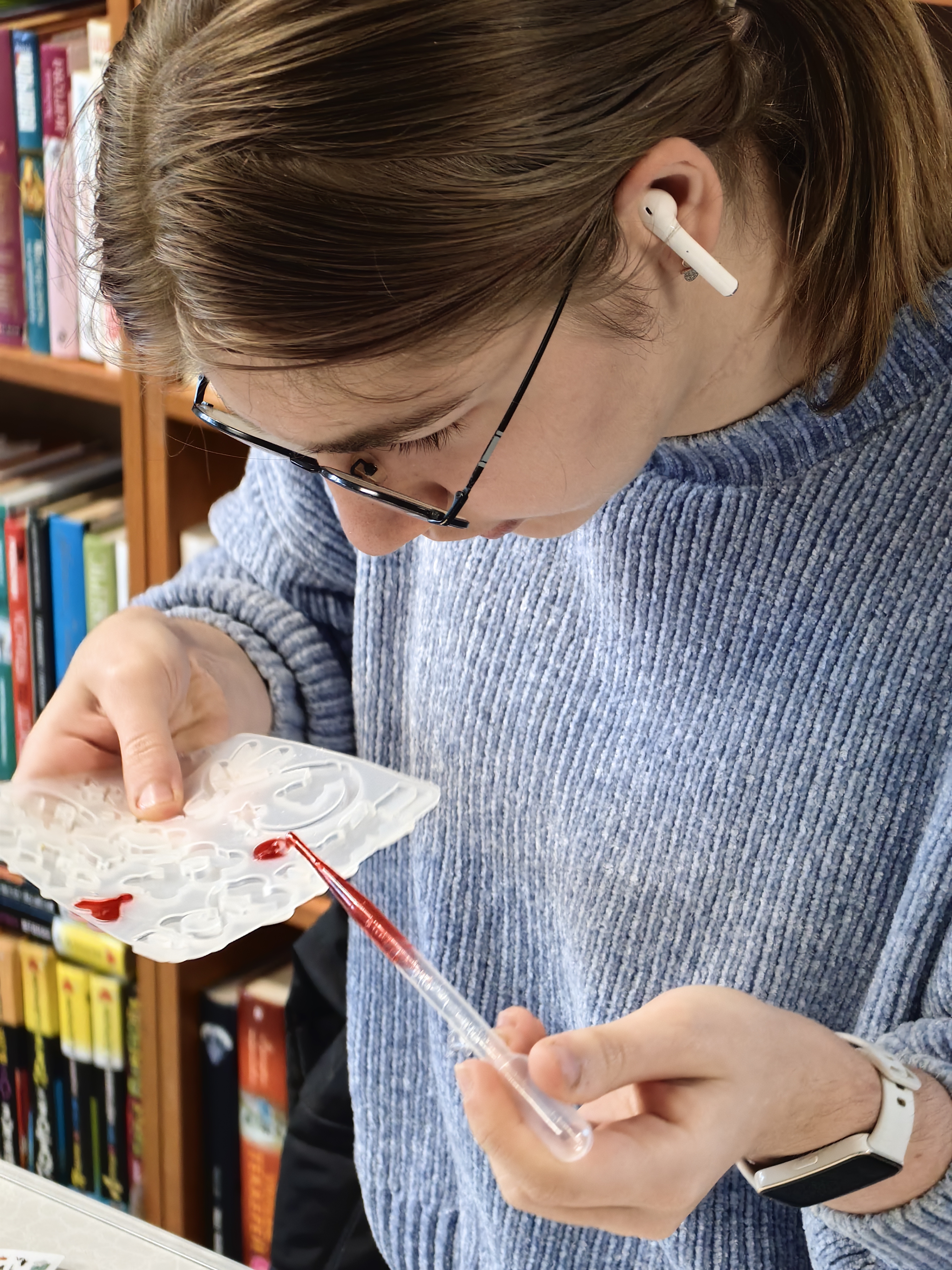 В начале мастер – класса библиотекарь Анна Вардугина познакомила с теоретическими основами работы с эпоксидной смолой, нюансами применения красителей и пигментов, а также раскрыла основные секреты правильной заливки и обработки готового изделия. В ходе работы участники научились замешивать смолу, используя красители и блёстки. Затем тонкой струйкой выливали смолу в силиконовый молд и с помощью специальной палочки им необходимо было избавить своё изделие от пузырьков. Полученной смеси дали подсохнуть в течение 15–20 минут. С помощью пинцета на застывшую поверхность выкладывали различные материалы: декоративный наполнитель, бисер, засушенные цветы и листочки, блёстки. После застывшее изделие девушки шлифовали и полировали специальной губкой. А в заключении устанавливали различную фурнитуру. В результате кропотливый труд + фантазия у каждого участника получилось красивые украшения, брелки, елочные украшения и даже талисманы, сделанное своими руками. Застывшее чудо из эпоксидной смолы будет долго радовать наших участников своим внешним видом, так как оно не повреждается, не портится и сравнительно долго держит форму.