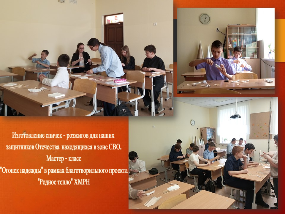 Модельная библиотека п. Луговской принимает активное участие в волонтерской деятельности. Часто библиотечные мероприятия, акции, мастер - классы тесно связаны с поддержкой военнослужащих российских военнослужащих в зоне специальной военной операции. Библиотекарь Татьяна Кошелева в рамках всероссийской акции #МЫВМЕСТЕ совместно с благотворительным проектом «Родное тепло» провела мастер - класс «Огонек надежды» по изготовлению спичек - розжигов для учащихся МБОУ ХМР СОШ п. Луговской. Активное участие в мероприятии приняли ребята из 6 и 8 класса, педагоги Людмила Кайдаулова, Зоя Козина. Всего было изготовлено 170 штук спичек. Ребятам понравилась необычная чудо-спичка. О ее удивительных свойствах библиотекарь Татьяна Кошелева рассказала на мастер-классах.Выражаем искреннюю признательность всем участникам мастер-класса за активное участие. Особая благодарность педагогам МБОУ ХМР СОШ п. Луговской — Людмиле Кайдауловой и Зое Козиной.