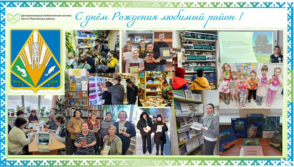 12 ноября в честь 102-летия со дня образования Ханты-Мансийского района, библиотеки Муниципального казенного учреждения Ханты-Мансийского района «Централизованной библиотечной системы» стали настоящими центрами притяжения для жителей. В рамках масштабной краеведческой кампании в отделениях библиотек, от крупных сел до небольших деревень, был проведен цикл мероприятий, объединенных общей идеей — пробудить и укрепить интерес к истории малой родины, сохранить культурное наследие и объединить поколения.