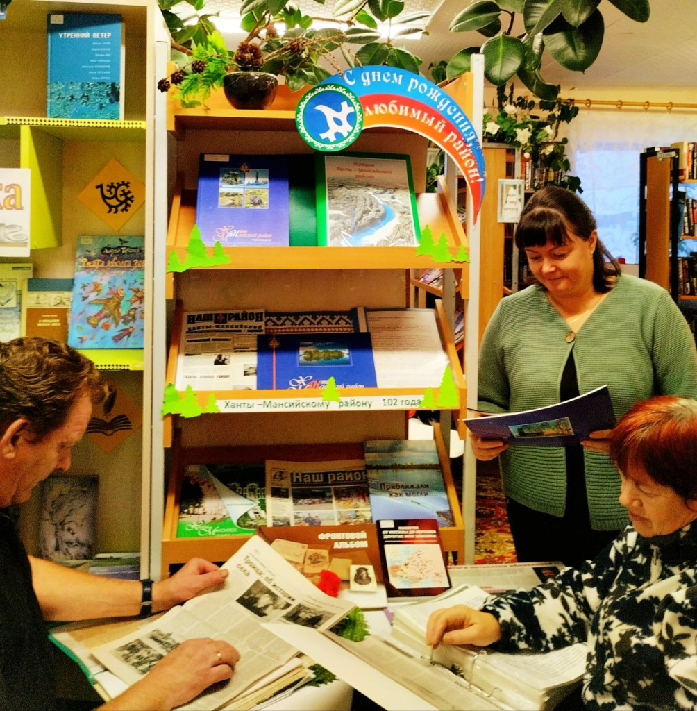 Центральным событием стала серия тематических выставок под названием «Наш дом — Ханты-Мансийский район». Эти экспозиции, развернутые в библиотеках сел Зенково, Батово, Кышик, Реполово, Шапша, Ягурьях и других, предлагали читателям уникальное путешествие во времени. На полках и стендах были представлены не только книги, но и бесценные архивные материалы: старые фотографии, документы, газетные вырезки разных лет и тематические альбомы, собранные библиотекарями. В селе Троица, например жители, могли познакомиться с папкой «История в лицах» и уникальной подборкой газетных статей о селе, начиная с 1958 года. Эти выставки стали материальным мостом, связывающим современность с прошлым, и наглядно демонстрировали, что история района складывается из судеб отдельных людей и населенных пунктов.