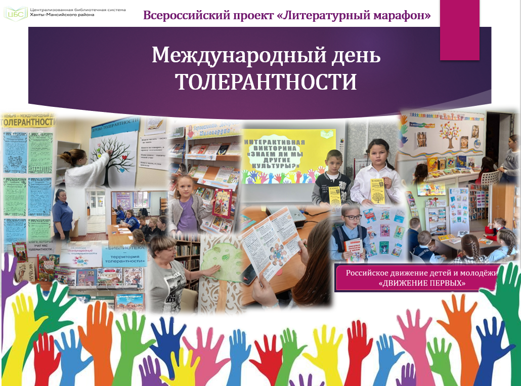 В рамках Всероссийского проекта «Литературный марафон», инициированного общероссийским движением детей и молодежи «Движение первых», библиотеки МКУ ХМР «Централизованной библиотечной системы» провели масштабную серию мероприятий, приуроченных к Международному дню толерантности. С 14 по 18 ноября 2025 года в 12 отделениях библиотек прошли тематические выставки и акции, объединившие участников разных поколений.