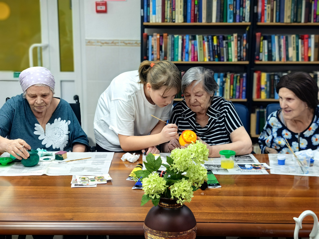 Встреча была посвящена творчеству. Вдохновившись работами известных мастеров, участники приступили к росписи гипсовых горшочков. Итогом стали очень яркие и уникальные работы, которые будут радовать своих авторов.