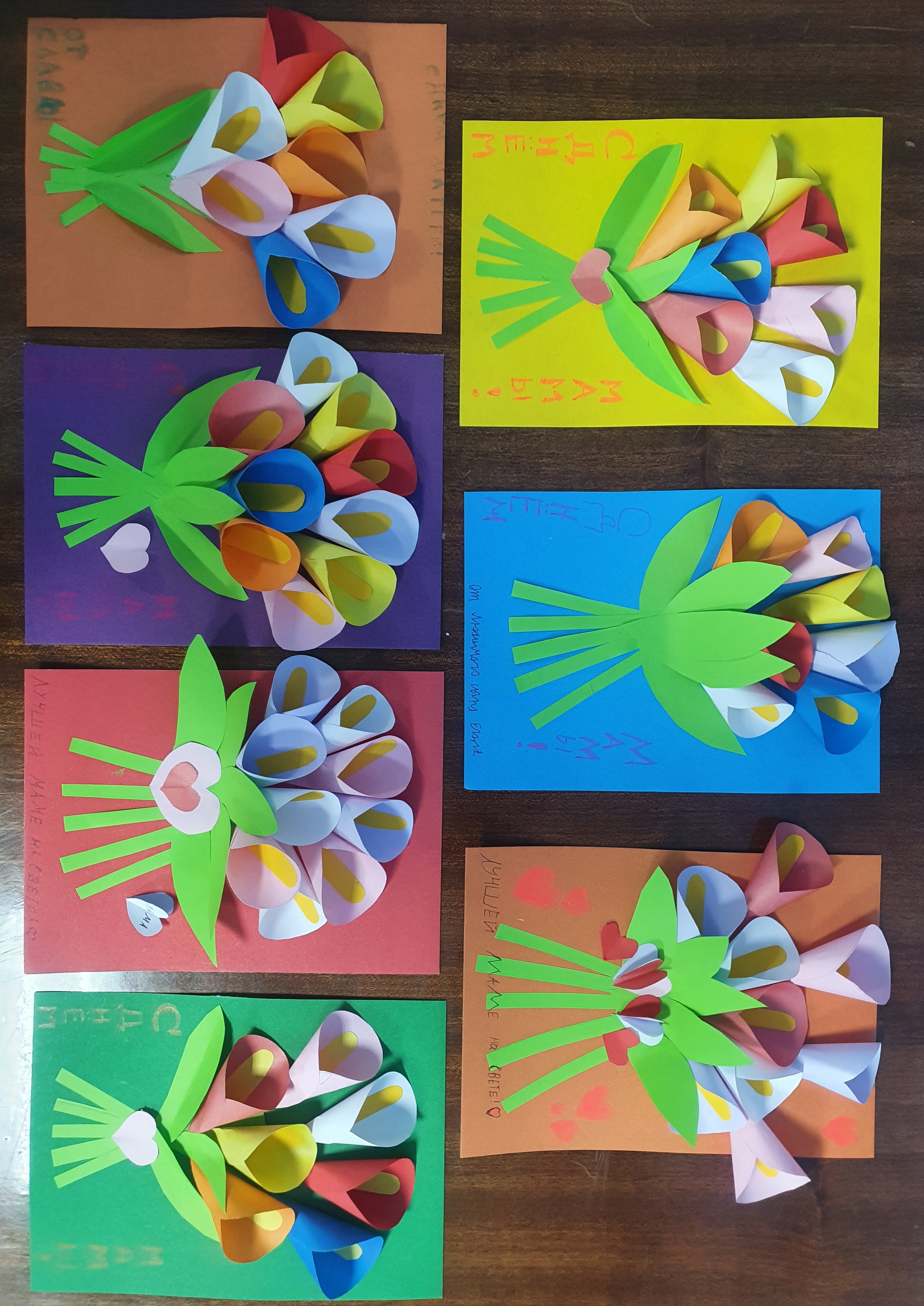 Все участники мастер-класса получили массу эмоций и хорошее настроение. Готовые открытки дети унесли домой, чтобы в праздничный день подарить их своим дорогим и любимым мамочкам.